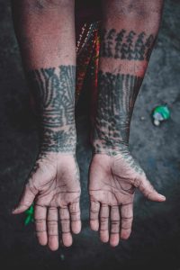 Traditionally inked Tattoo depicting ancient Tharu culture.